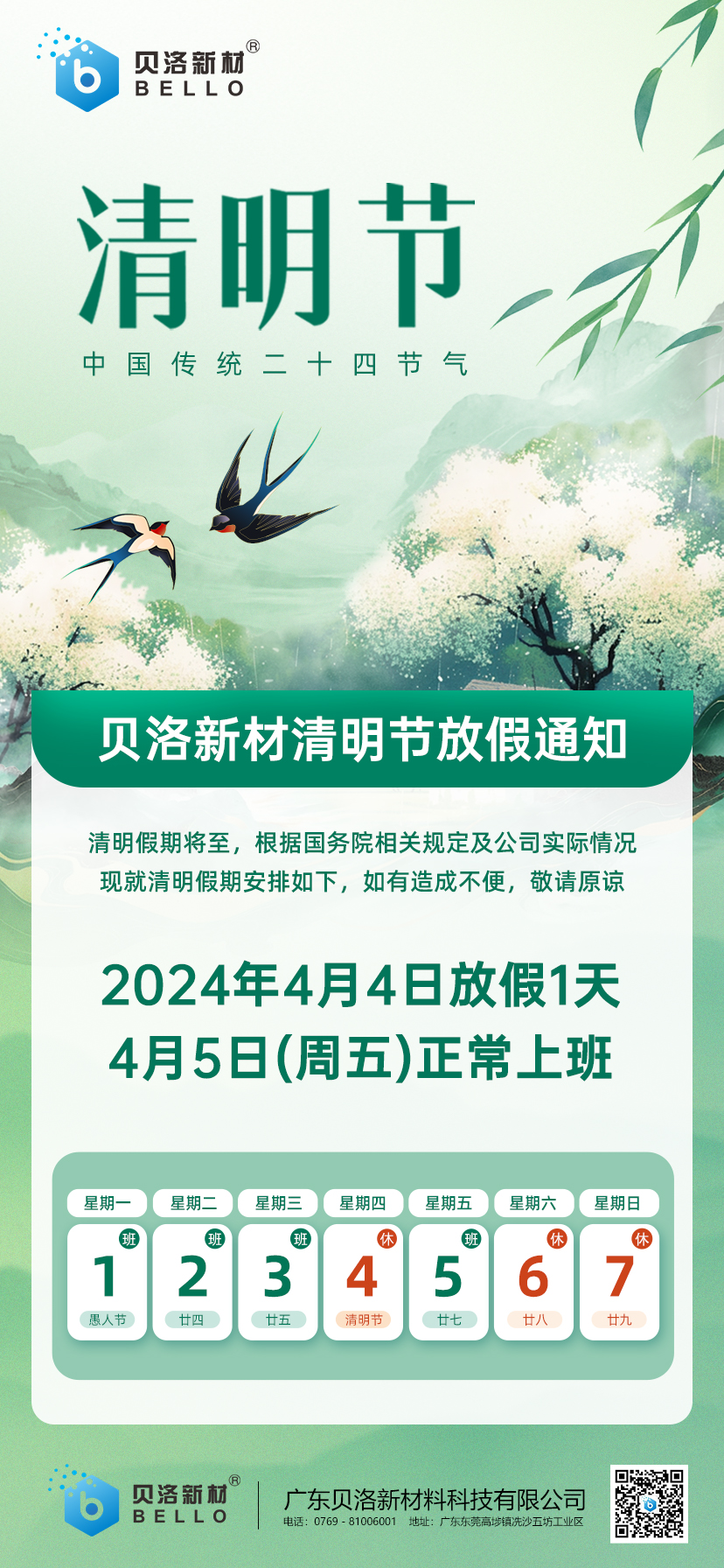 PA旗舰厅新材清明放假通知