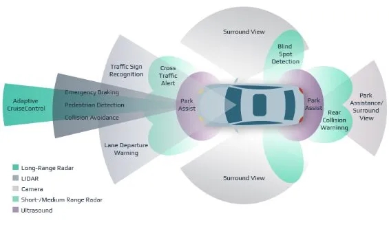 “视野”人数范例,包含重重叠叠的拍摄头、汽车汽车雷达、激光机器汽车汽车雷达和超声检查波感测器器,那些感测器器就必须在车俩模式内紧密配合运作,以传送信息和求算策略不良反应