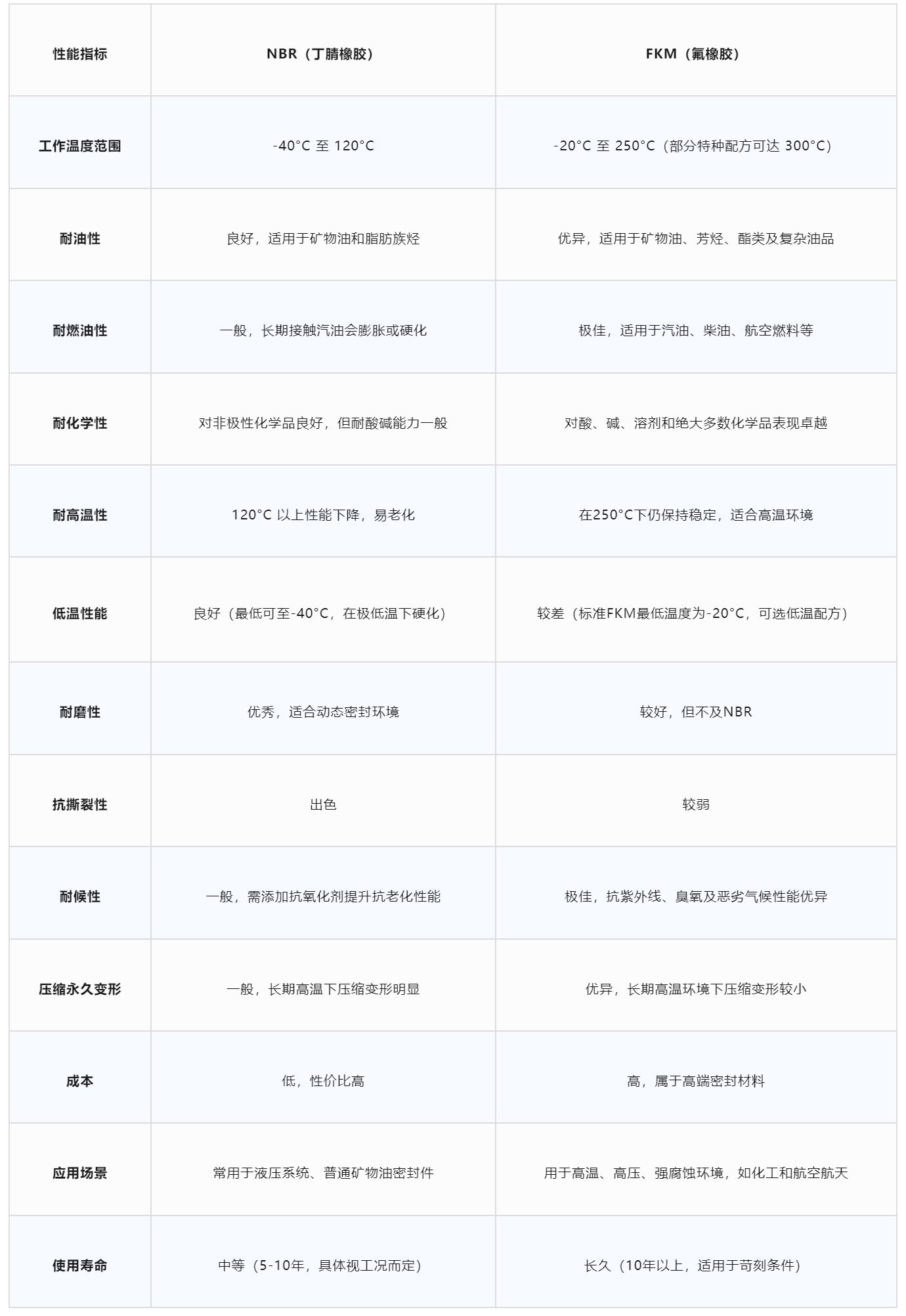 FKM:塑性性和抗挤压膨胀效率强,但抗破或撕裂性和耐磨涂层性略逊于NBR。