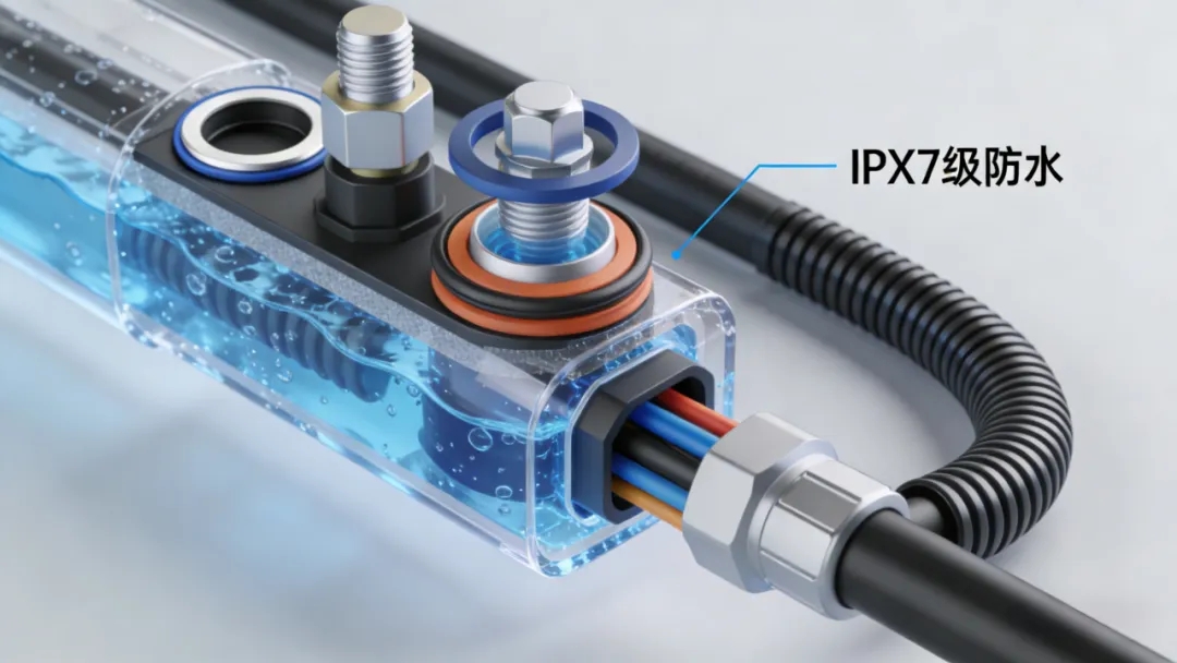 防水等级则是线束在复杂环境中的关键防护。符合IPX7标准的线束采用密封圈、防水栓与波纹管三重设计,可在1米水深浸泡30分钟保持内部干燥。防水栓能在-40℃至125℃保持弹性,波纹管则有效减震抗磨。